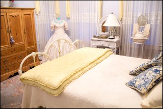 But seeing as how we are very much not urban creatures, spending an evening in a swanky high rise just isn’t my thing. We were lucky enough to find a bed and breakfast only a few blocks away from our work, and we thought that would be an absolutely perfect option! (link) So I called and booked us a room for our honeymoon night, figuring we could at least get off work and relax for a few hours without having to deal with traffic!The room was super cute, there was this toile canopy over the iron bed, and there was even a TV tucked away in the armoire!